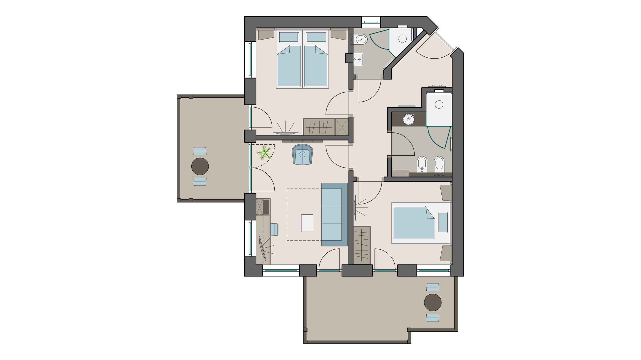 Two bedrooms, two bathrooms, two balconies – a home away from home. The Vitalas Plus Suite offers more than just space. It offers room for togetherness, lived with style. Sometimes soft, sometimes sleek. Always high-quality. Always bathed in morning light. No waiting, no compromises – just space for yourself. And space to share.